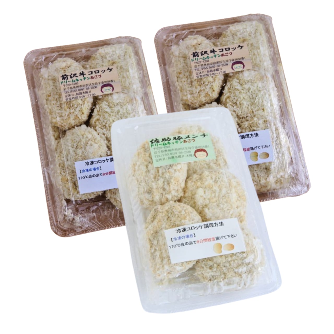 【生冷凍】バラエティセット(前沢牛コロッケ5個・佐助豚メンチカツ5個・季節のコロッケ5個)